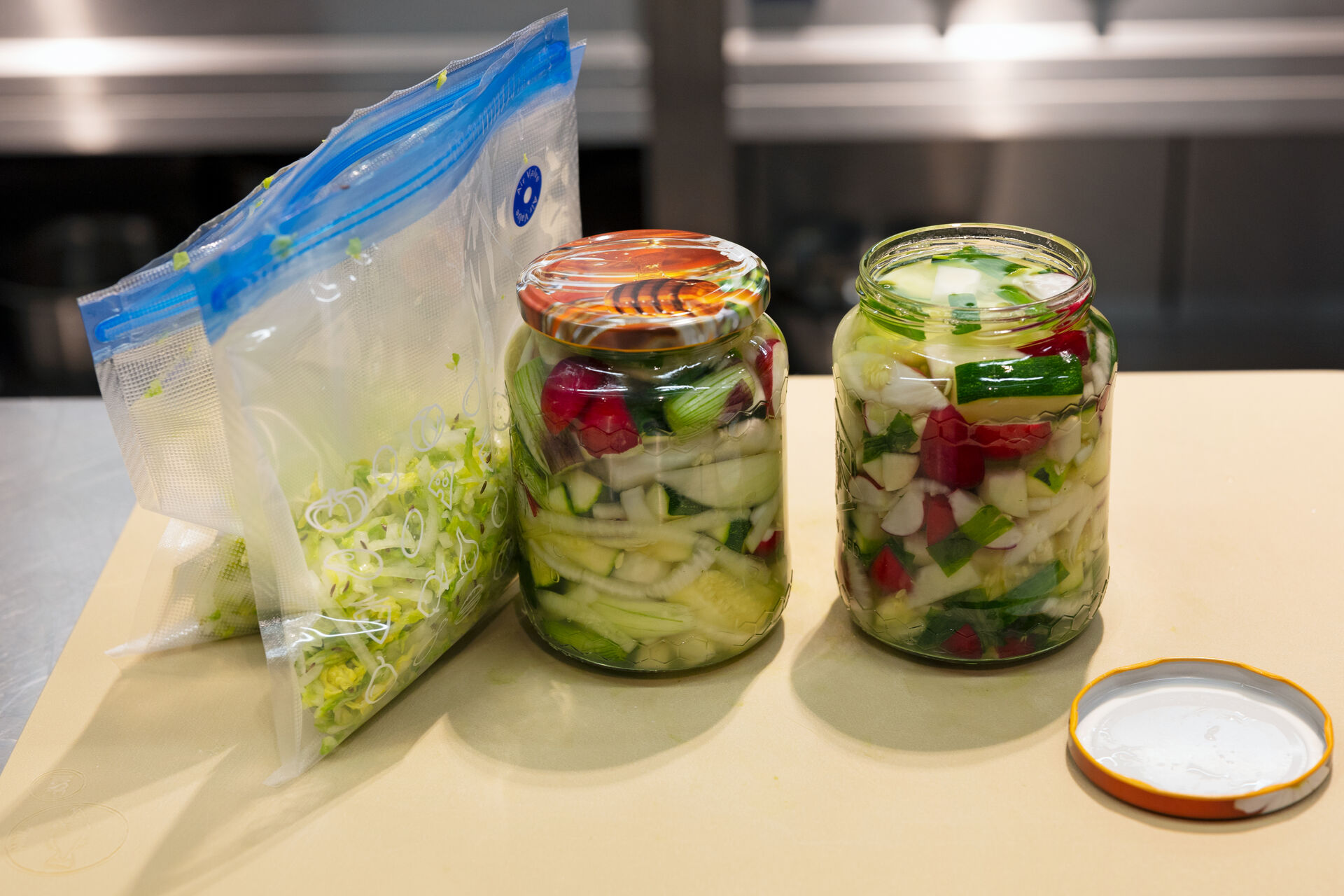Workshop se skládá ze dvou částí – teoretické a praktické, každá z nich trvá zhruba hodinu. Z workshopu si odnesete základní informace o fermentaci zeleniny, recepty a zeleninu připravenou na kvašení.
