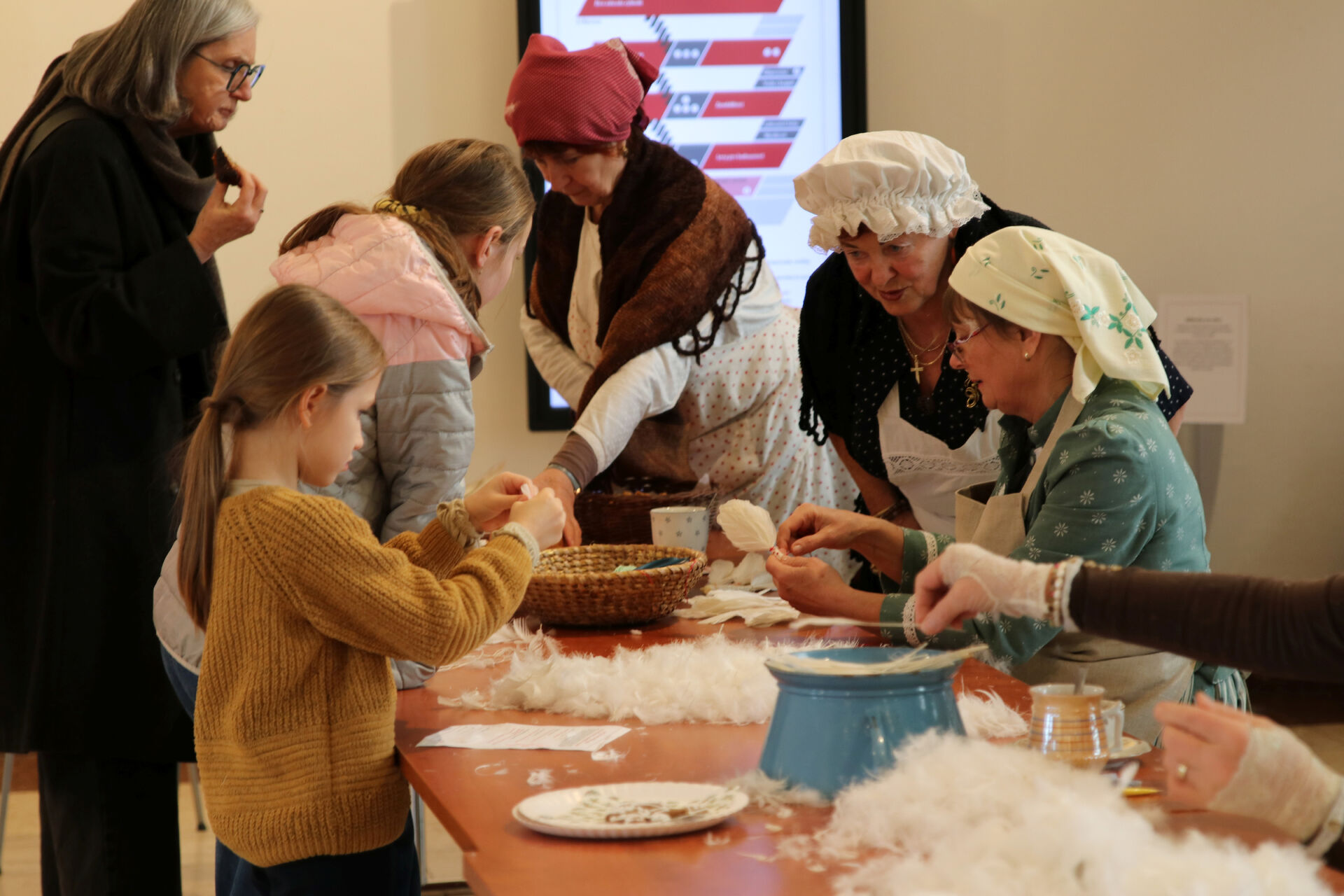 - workshopy pro děti i dospělé, draní peří, výroba mašlovaček, psaní husím brkem a další...