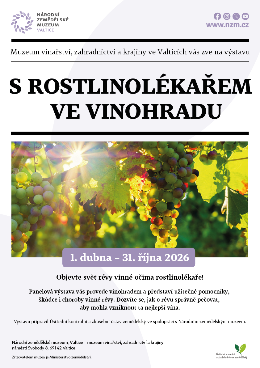 Panelová výstava vás provede mezi řádky révy vinné a představí vám její obyvatele – ty, kteří škodí, ale i takové, kteří pomáhají. Zjistíte, jaké choroby vinaři i rostlinolékaři nejčastěji řeší, s jakými škůdci se setkávají nebo co prozradí i nejmenší změny na listech a hroznech a proč je potřeba si jich všímat.